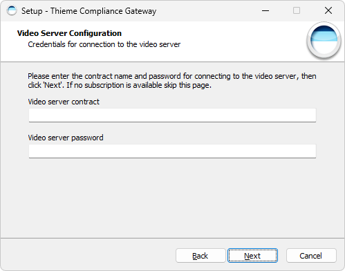 Wenn Sie von einer Version vor 9.0.0 aktualisieren, werden in diesem Dialog nicht die bisherigen Konfigurationseinstellungen angezeigt, sondern Beispielwerte. Tragen Sie in diesem Fall die Einstellungen neu ein. Entnehmen Sie die Werte bei Bedarf - mit Ausnahme des Passworts - der Datei config-application.yml in Ihrem Gateway-Verzeichnis, Abschnitt video. Falls Sie das unverschlüsselte Passwort nicht zur Verfügung haben, lassen Sie das Feld leer.