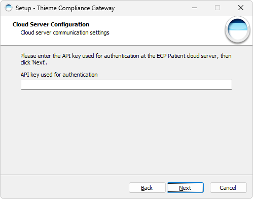 Wenn Sie von einer Version vor 9.0.0 aktualisieren, werden in diesem Dialog nicht die bisherigen Konfigurationseinstellungen angezeigt. Wenn Sie den unverschlüsselten API Key nicht zur Verfügung haben, lassen Sie das Feld leer.