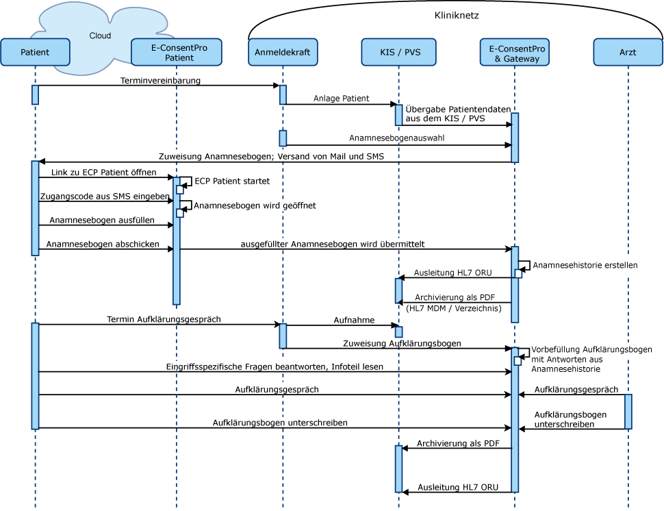 Mit der Anwendung E-ConsentPro Patient können Patienten Anamnesedaten bereits zu Hause auf dem eigenen Smartphone, Tablet oder Laptop erfassen und an die Gesundheitseinrichtung übermitteln. Die Patientenanwendung ist ohne Patientenportal einsetzbar.